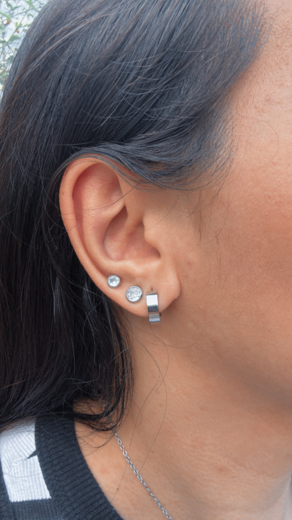 Conjunto em aço inoxidável colar e brinco ponto de luz